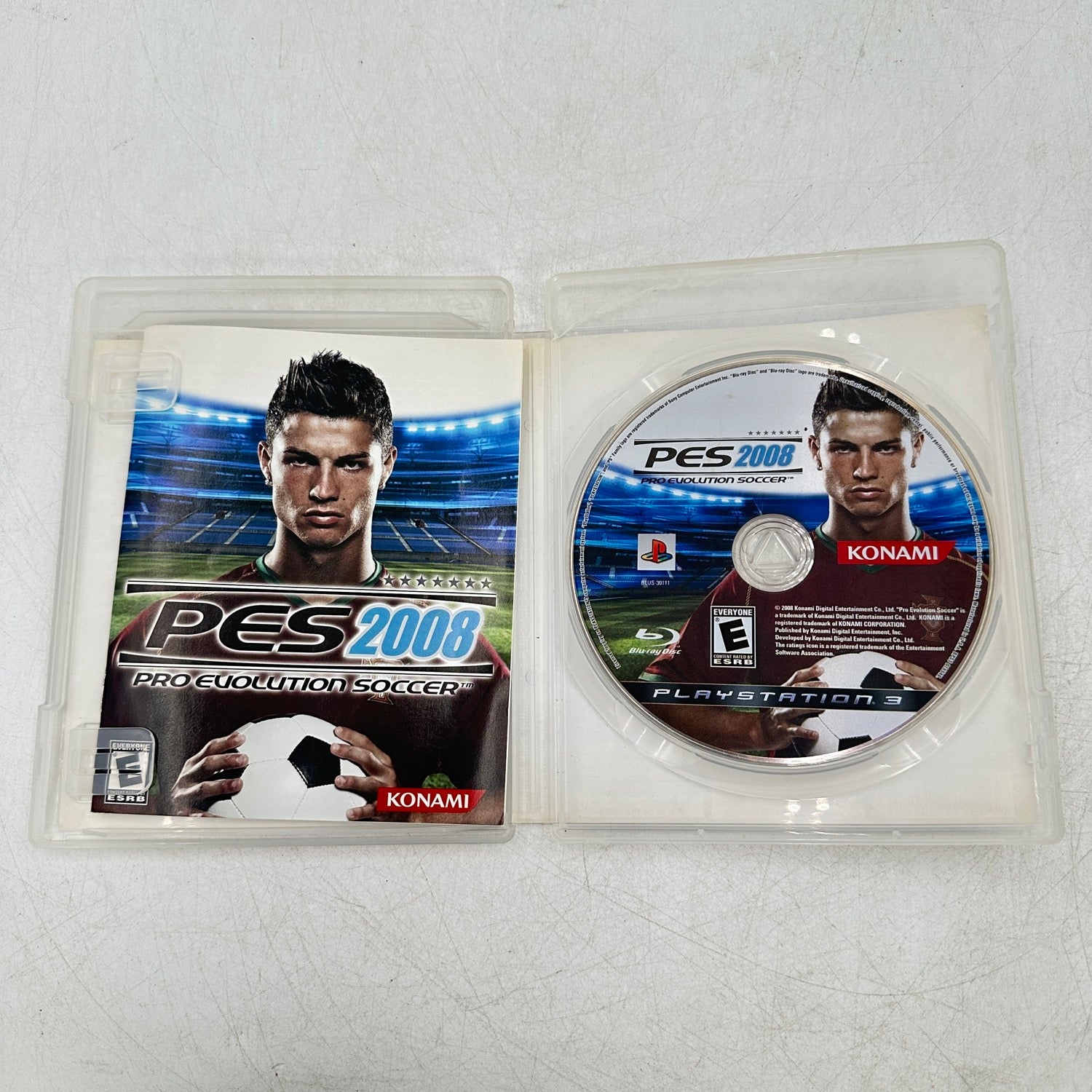 The Case and label are in good cosmetic condition with light wear. The GTA Game shows little to no wear. The PES 2008 Disc has a few light scratches at the bottom.